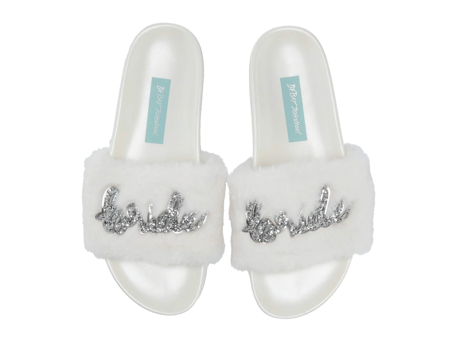 - Elevate your look as you lounge around in these Blue by Betsey Johnson® Alice Slipper with a faux-fur upper and “Bride” sequin design at vamp.