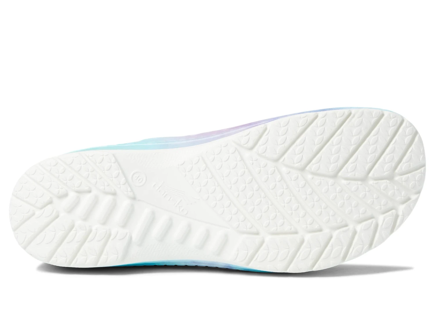- Wood grain printed sole with channeled outsole for durability.