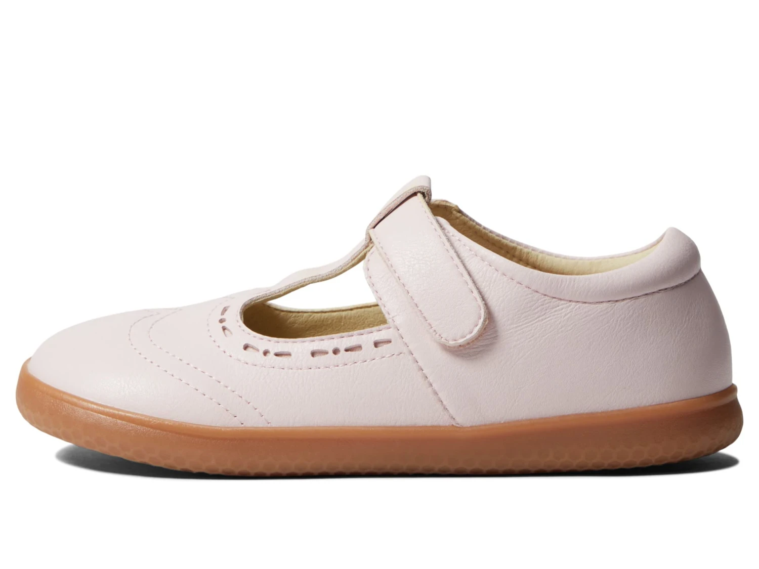 - T-strap with hook-and-loop closure.