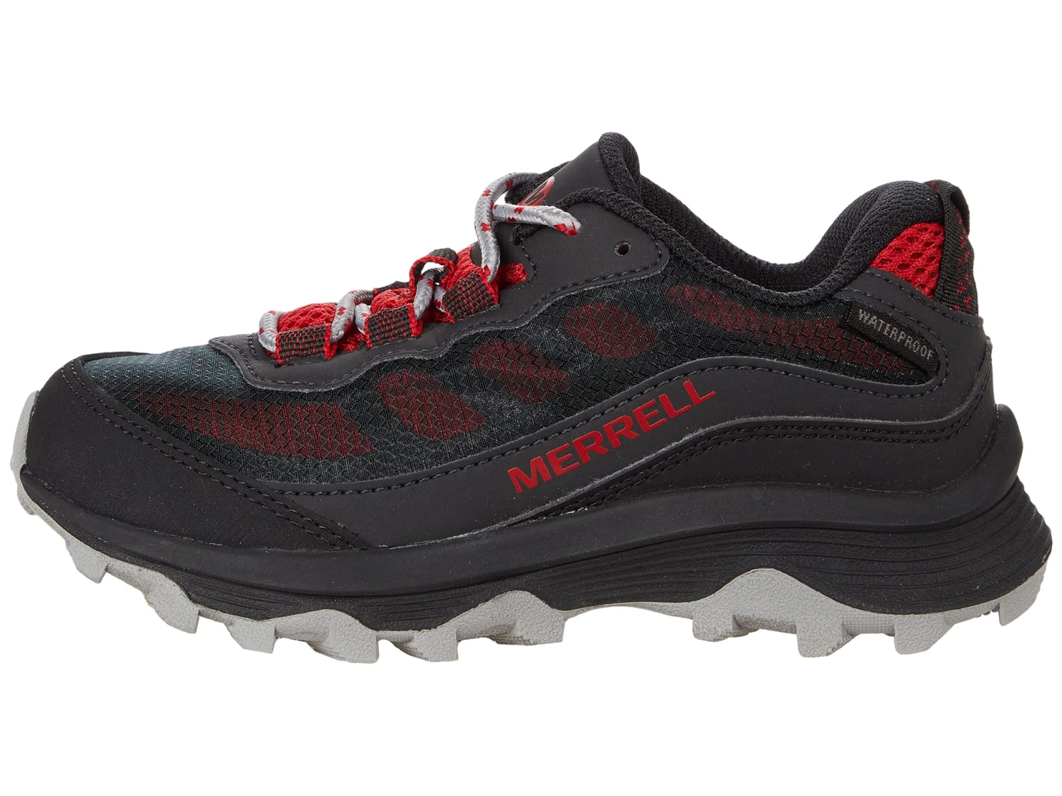 - Tough, durable, and ready for any adventure you have in mind for you and your little one, the Merrell® Kids Moab Speed Low Waterproof are made with 100% recycled laces, a padded collar and protective toe cap, as well as a rock plate to keep their little feet protected from the dangers of falling objects.